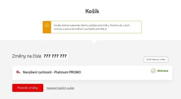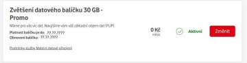 Krok č. 1 - V Samoobsluze u vašeho čísla otevřete Služby a v Sekci Internet najdete buď akci "Navýšení rychlosti - Platinum PROMO" nebo "Zvětšení datového balíčku 30 GB - Promo". Klikni na tlačítko "Změnit".