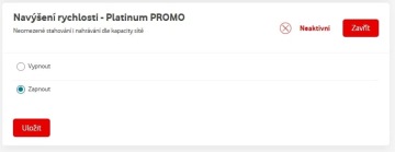 Pokud máš u Skaut Mobilu neomezená data (balíček 3), můžeš využít akci Navýšení rychlosti – Platinum PROMO. Díky tomu získáš na 31 dní data bez rychlostního omezení – tedy maximální rychlost stahování i nahrávání podle kapacity sítě.