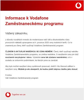 Vodafone v těchto týdnech prostřednictvím vyúčtování a v Můj Vodafone postupně informuje své zákazníky o plánované úpravě cen tarifů od prosince 2025. Někteří členové Skaut Mobilu už takové oznámení viděli na svém vyúčtování, jiní ho uvidí až později podle termínu svého zúčtovacího období.